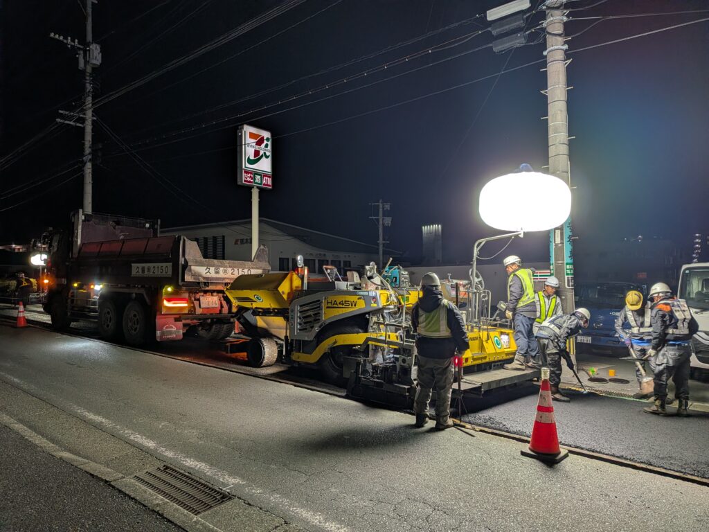 多くの重機を動員して古くなった道路の更新・舗装を行っています